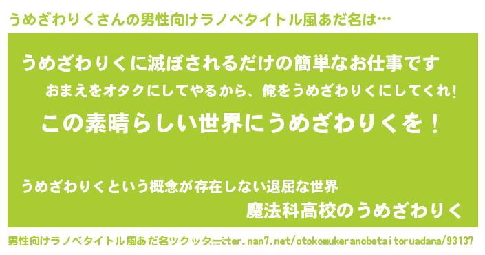 | 胡散臭い通販商品みたいなあだ名 | 『あなたにだけ特別に提供する100年もののヴィンテージワイン…その名も「うめざわりく」』 |