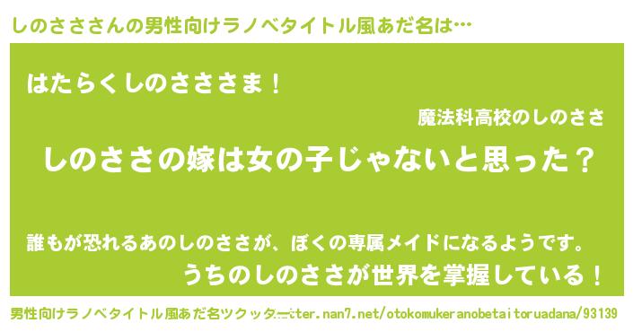 | 意味不明あだ名 | 『とにかく怪しいしのささ』 |