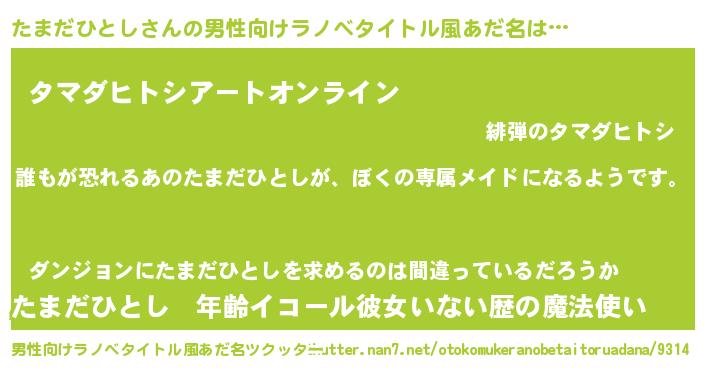 | 女子向けラノベタイトル風あだ名 | 『異世界でカフェたまだひとしを開店しました。』 |