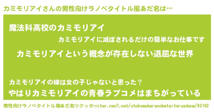 | 胡散臭い通販商品みたいなあだ名 | 『来世でも幸せになれる健康食品…その名も「カミモリアイ」』 |