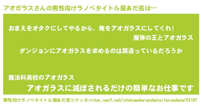 | 胡散臭い通販商品みたいなあだ名 | 『信頼と実績のネックレス…その名も「アオガラス」』 |