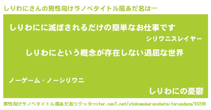 | ヘコむあだ名 | 『しりわに(苦笑)』『しりにー』 |