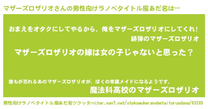 | ヘコむあだ名 | 『マザぷりん』『マザーズロザリオ(笑)』 |