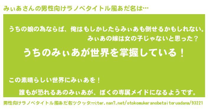 | 女子向けラノベタイトル風あだ名 | 『男装みぃあの憂鬱な任務』 |