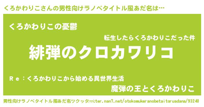 | 胡散臭い通販商品みたいなあだ名 | 『必ず成功する水晶球…その名も「くろかわりこ」』 |