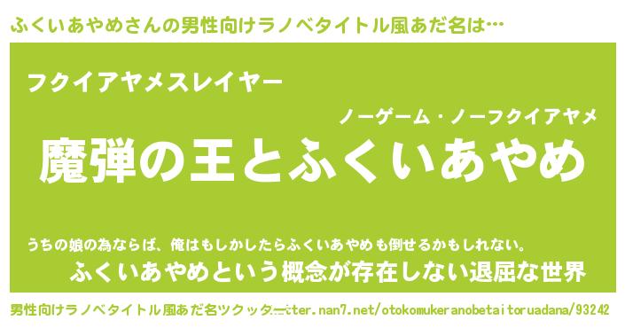 | 女子向けラノベタイトル風あだ名 | 『ふくいあやめが死なない童話 林檎のふくいあやめの診療簿』 |