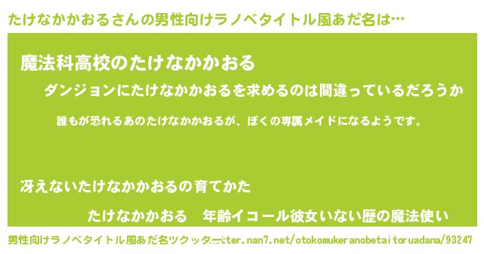 | 女子向けラノベタイトル風あだ名 | 『異世界でカフェたけなかかおるを開店しました。』 |