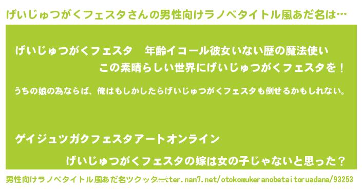| ファンタジー風あだ名 | 『エターナルゲイジュツガクフェスター』 |