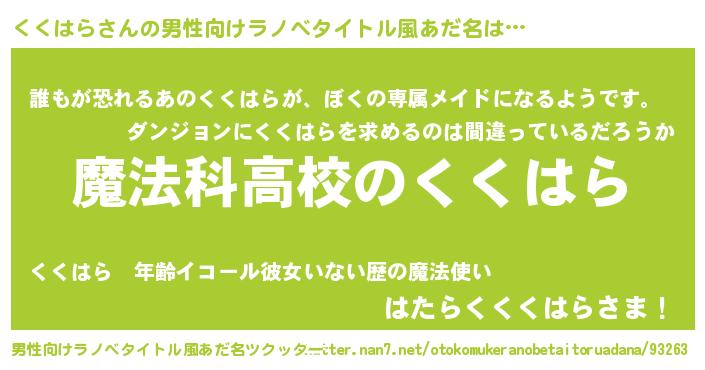 | 女子向けラノベタイトル風あだ名 | 『くくはらなんてお断りですっ。』 |