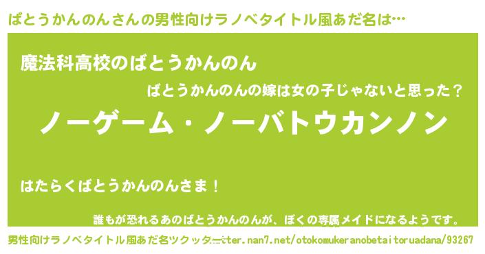 | 女子向けラノベタイトル風あだ名 | 『死神ばとうかんのんの再婚』 |