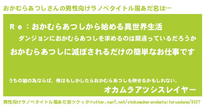| 意味不明あだ名 | 『自称おかむらあつし』 |