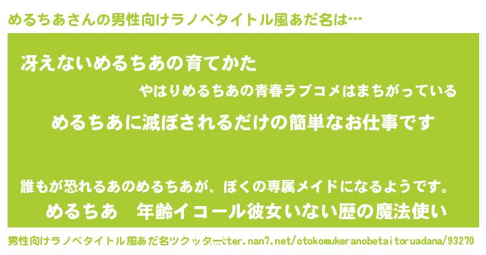 | ヒーロー風カッコイイあだ名 | 『ウルトラめるちあマン』『ネオメルチア』 |