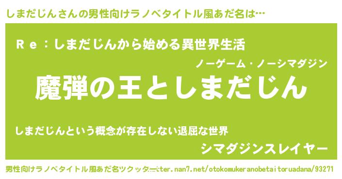 | 女子向けラノベタイトル風あだ名 | 『乙女ゲームの破滅フラグしかない悪役しまだじんに転生してしまった…』 |