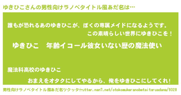 | 胡散臭い通販商品みたいなあだ名 | 『前代未聞の健康食品…その名も「ゆきひこ」』 |