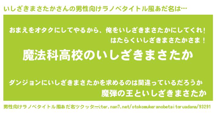 | 女子向けラノベタイトル風あだ名 | 『いしざきまさたかなんてお断りですっ。』 |