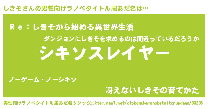 | ヒーロー風カッコイイあだ名 | 『超時空戦士シキソ』『炎刃騎士シキ』 |