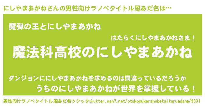 | 女子向けラノベタイトル風あだ名 | 『にしやまあかねなんてお断りですっ。』 |