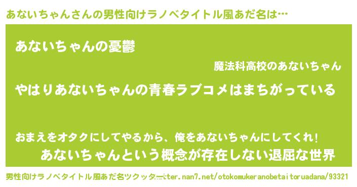 | 女子向けラノベタイトル風あだ名 | 『あないちゃんの雑貨屋さん』 |