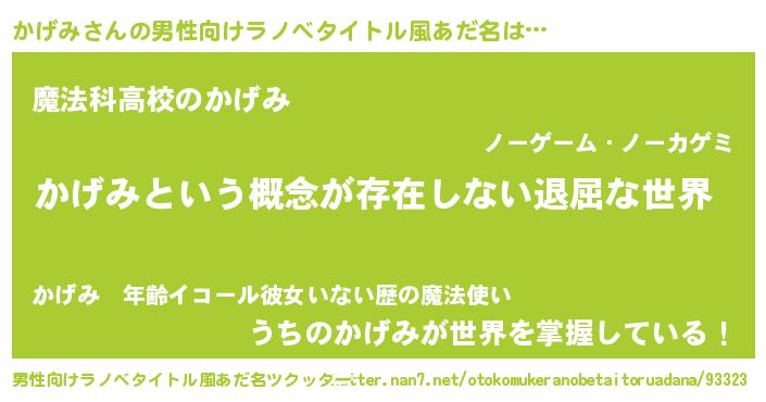 | ヒーロー風カッコイイあだ名 | 『ネオカゲミ』『超時空戦士カゲミ』 |