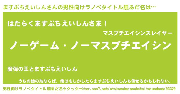 | 伝説のあだ名 | 『救世主となる錬金術士ますぶちえいしん』 |