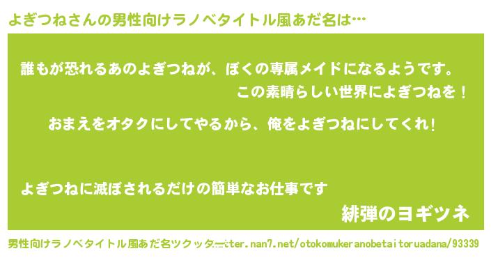| ヘコむあだ名 | 『よぎつね(小並感)』『よぎっ子』 |
