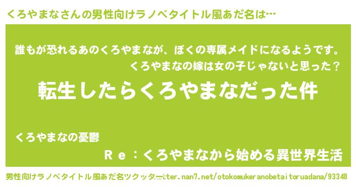 | 女子向けラノベタイトル風あだ名 | 『くろやまなの玉の輿計画!』 |