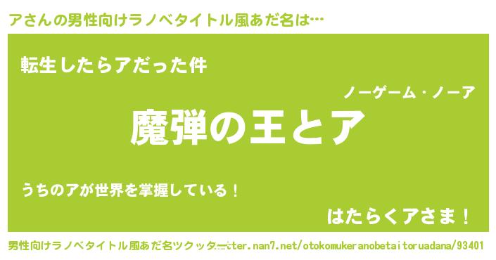 アさんの男性向けラノベタイトル風あだ名をツクッター!