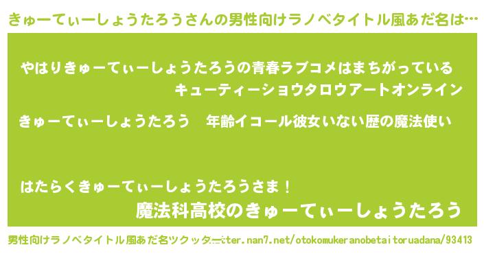 | 胡散臭い通販商品みたいなあだ名 | 『運命の人と巡り会える高級そうな絵画…その名も「きゅーてぃーしょうたろう」』 |