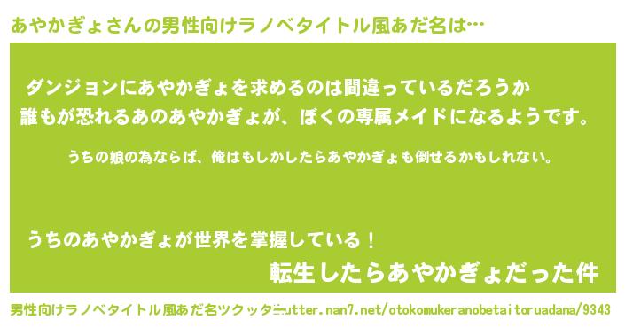 | 女子向けラノベタイトル風あだ名 | 『あやかぎょの婚約者』 |