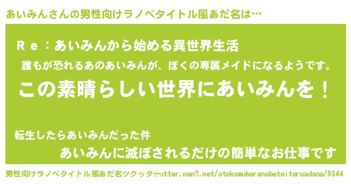 | 女子向けラノベタイトル風あだ名 | 『悪役あいみんに転生したようですが、知った事ではありません』 |