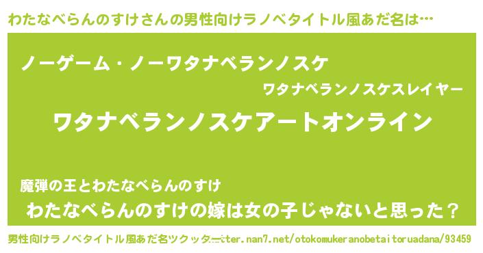 | 胡散臭い通販商品みたいなあだ名 | 『億万長者になれるブレスレット…その名も「わたなべらんのすけ」』 |
