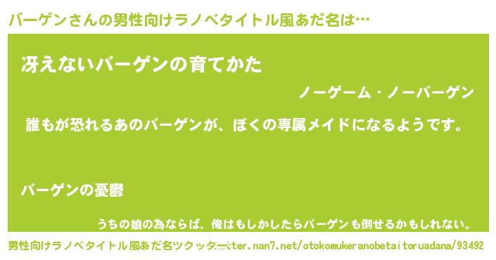 | 胡散臭い通販商品みたいなあだ名 | 『来世でも幸せになれる水素水…その名も「バーゲン」』 |