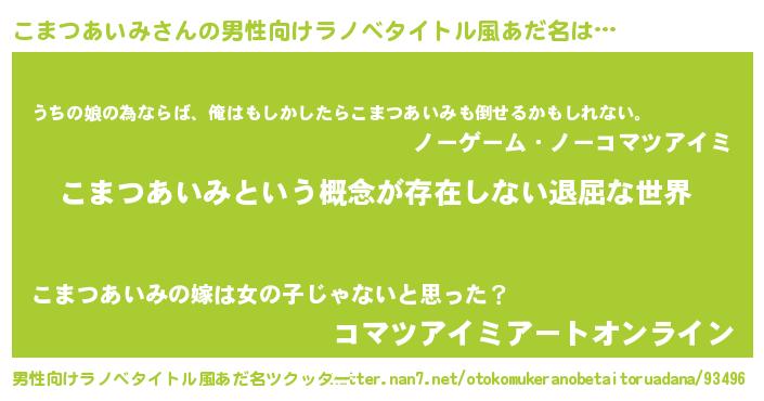 | 胡散臭い通販商品みたいなあだ名 | 『絶対に幸福をもたらす水素水…その名も「こまつあいみ」』 |