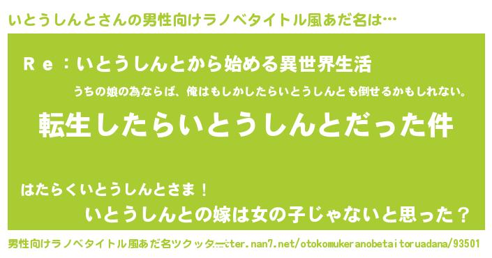 | 胡散臭い通販商品みたいなあだ名 | 『テレビで話題の冬虫夏草…その名も「いとうしんと」』 |