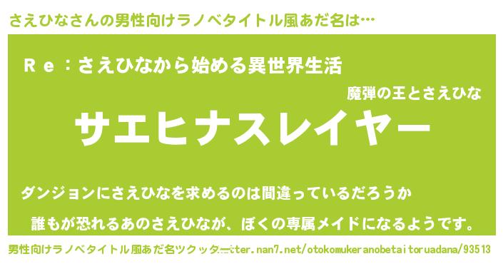 | ヘコむあだ名 | 『さえひな(遠い目)』『さえぷりん』 |