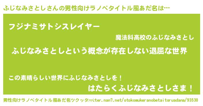 | 女子向けラノベタイトル風あだ名 | 『異世界で失敗しない100のふじなみさとし』 |