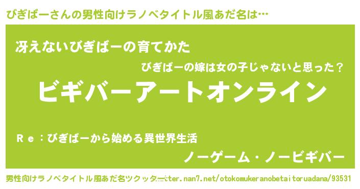 | 女子向けラノベタイトル風あだ名 | 『びぎばー姫と円卓の騎士』 |