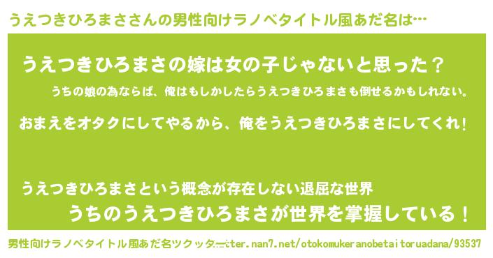 | 女子向けラノベタイトル風あだ名 | 『うえつきひろまさ夫妻のなれそめ』 |