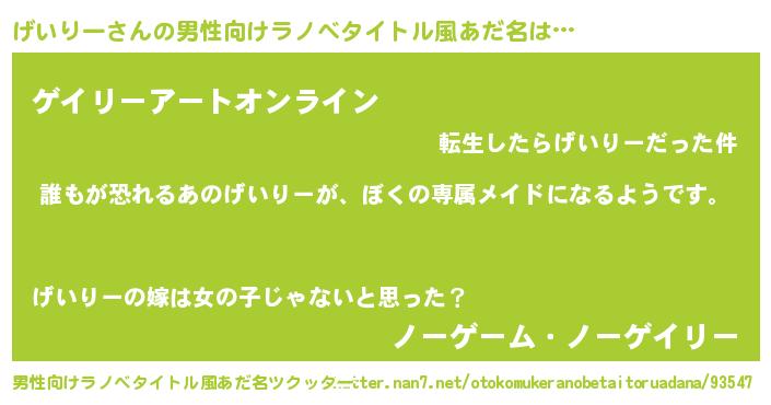 | ヘコむあだ名 | 『げいりー(笑)』『げいにゅー』 |