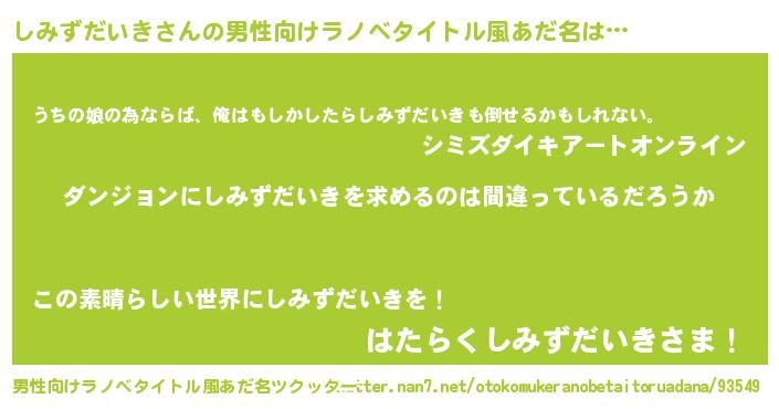 | 女子向けラノベタイトル風あだ名 | 『しみずだいきは平凡を望む』 |