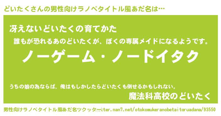 | ヒーロー風カッコイイあだ名 | 『天空の使者どいたく』『ネオドイタク』 |