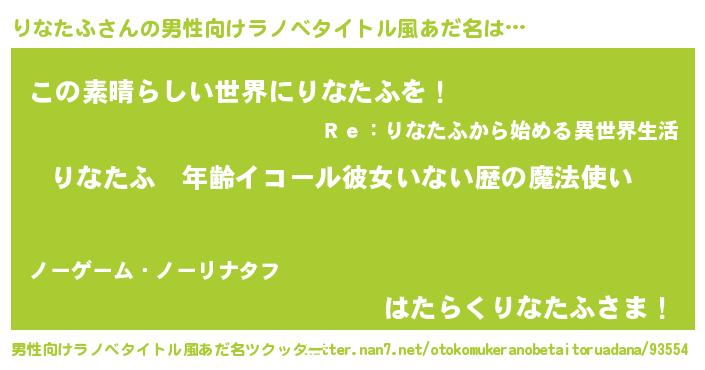 | 女子向けラノベタイトル風あだ名 | 『りなたふの玉の輿計画!』 |