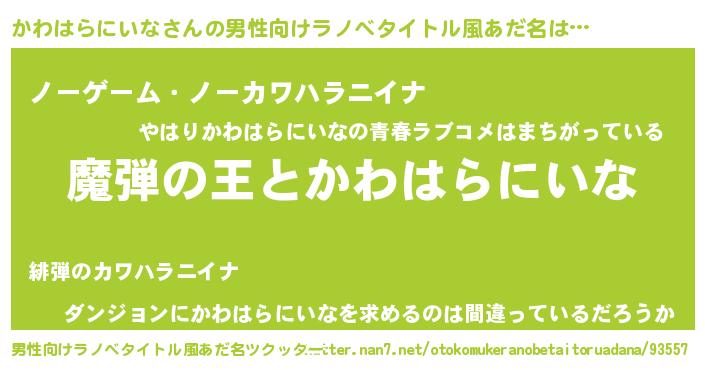 | 女子向けラノベタイトル風あだ名 | 『乙女ゲームの破滅フラグしかない悪役かわはらにいなに転生してしまった…』 |