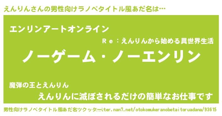 | 女子向けラノベタイトル風あだ名 | 『死神えんりんの再婚』『闇のえんりん』 |