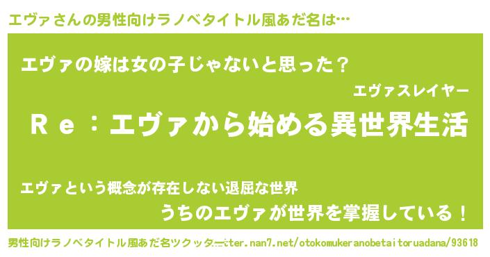 | ヘコむあだ名 | 『エヴっちょ』『エヴァ(小並感)』 |