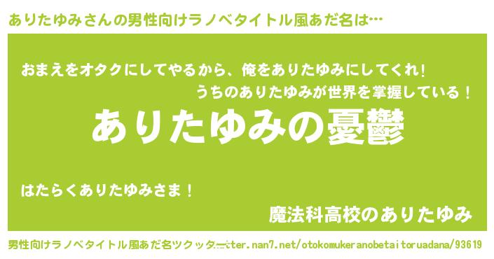 | 胡散臭い通販商品みたいなあだ名 | 『必ず成功するブレスレット…その名も「ありたゆみ」』 |