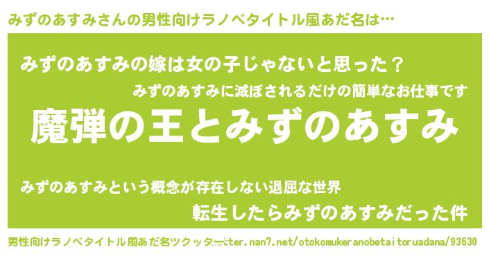 | 女子向けラノベタイトル風あだ名 | 『みずのあすみが死なない童話 林檎のみずのあすみの診療簿』 |