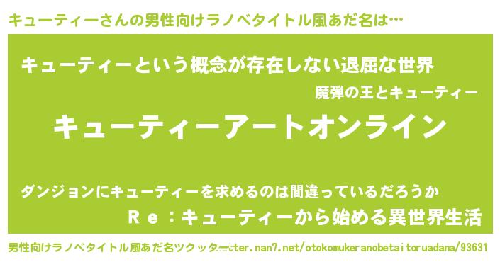 | 胡散臭い通販商品みたいなあだ名 | 『億万長者になれるブレスレット…その名も「キューティー」』 |