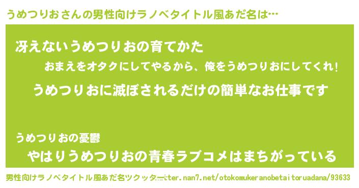 うめつりおさんの男性向けラノベタイトル風あだ名をツクッター!