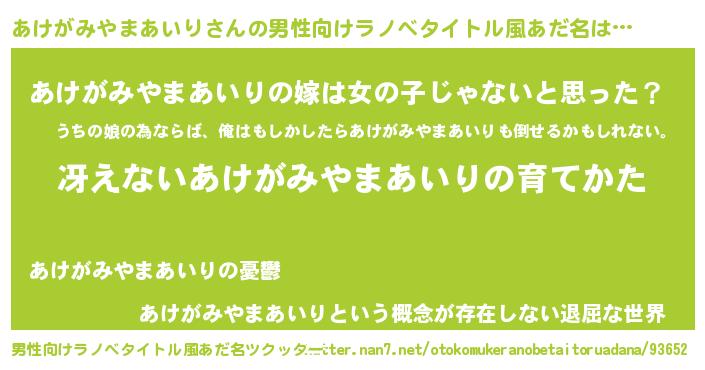| 胡散臭い通販商品みたいなあだ名 | 『伝統あるネックレス…その名も「あけがみやまあいり」』 |